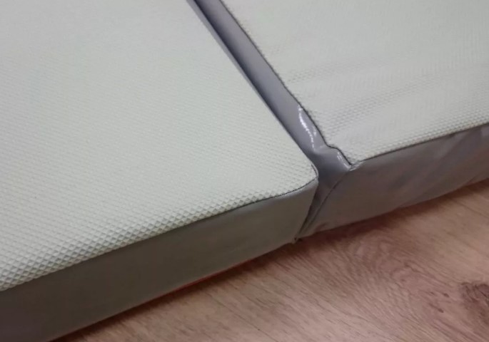 У изделия улучшенная надежность, достигается это благодаря толщине, которая составляет 20 см, мат можно сложить два раза, можно заниматься на сложенном изделии, наполнитель очень плотный.
