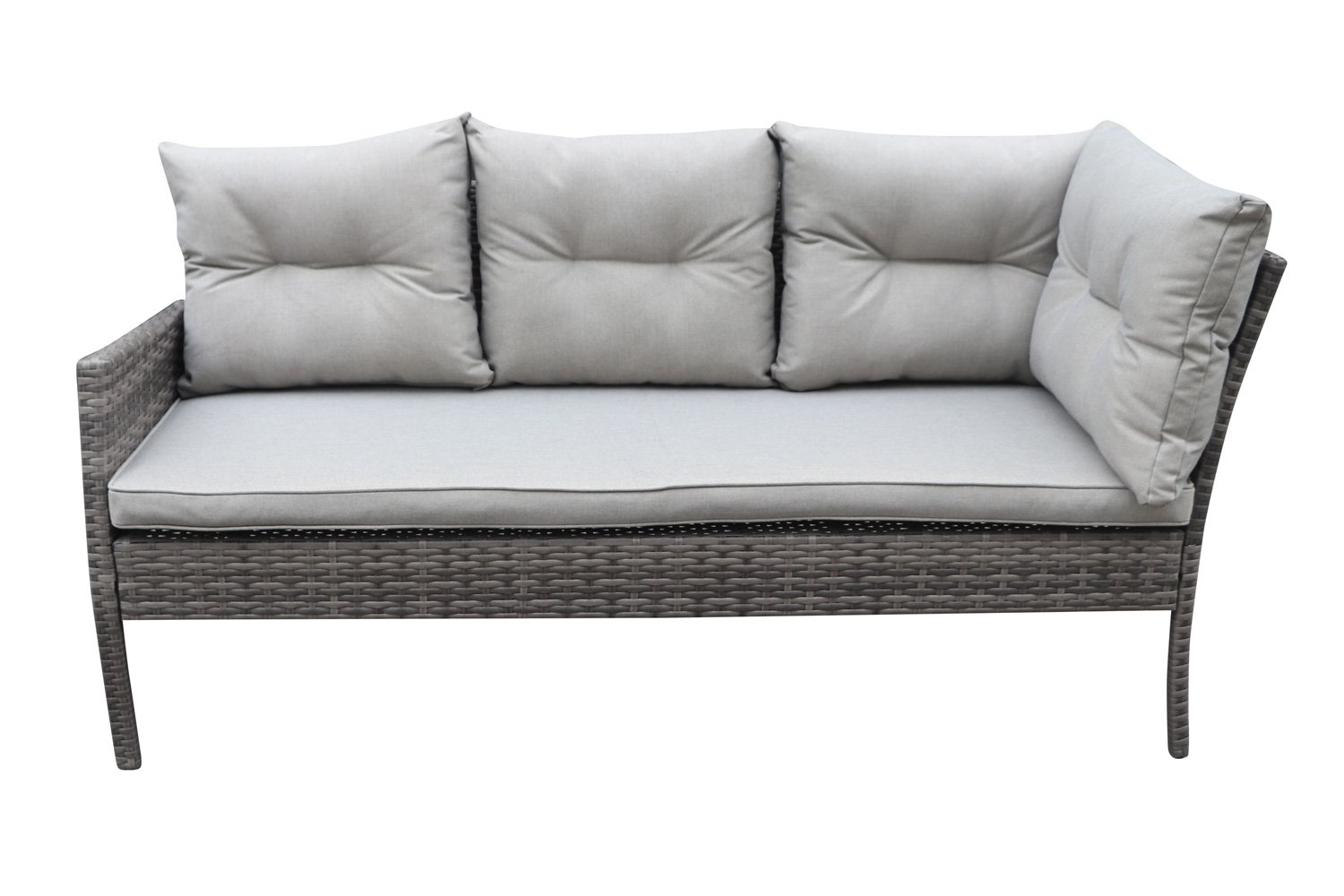 Кроме голой мебели, набор включает в себя матрасы и подушки. Подушки для сидения (матрасы) поставляются в количестве 2 штук с размерами 150х6х55 см; подушек для спины в наборе 7 штук, из которых 6 шт. размером 45х50х15 и 1 шт. 55х50х15 см. Каждая подушка и матрас покрыта съемным чехлом из материала полиэстер – синтетического волокна, которое не портиться от воздействия осадков и солнца, а также легко очищается в случае необходимости.