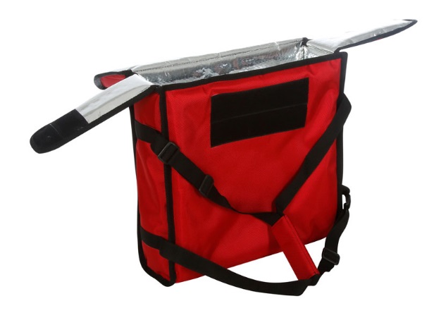 Мы занимаемся брендированием изделий, поэтому вы можете заказать сумки с любым принтом или вышивкой. Такие сумки послужат отличной контекстной рекламой. Размеры изделия - 350 мм х 350 мм х 100 мм. Его цвет - красный, есть вентиляция. Вентиляция создана для того, чтобы выходящий из пиццы пар не скапливался на стенках, не портил продукт. В итоге он приезжает в том состоянии, в котором должен быть.